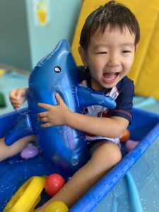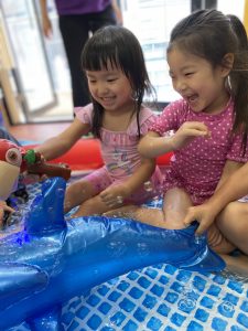 Twinkle Class 、Pluto ClassそしてAquarius Classのお友達はスクール内で水遊びをしました。