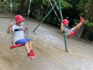 こちらはブランコチームの様子です!誰が1番高くこげるかな?