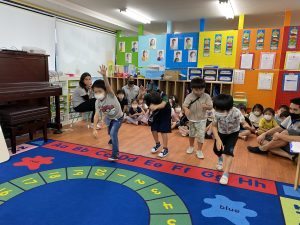 皆の前でも、上記のことを発表しました。こちらは年中さんのクラスの様子です。