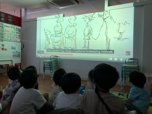 さて今回は「時間」について、年少さんから年長さんまで合同でビデオを見て、先生方の話を聞いて学びましたよ。