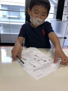 太陽の位置によって、影の長さも変わることを、ワークシートを使って勉強しました。
