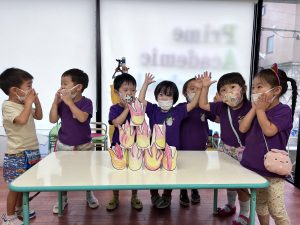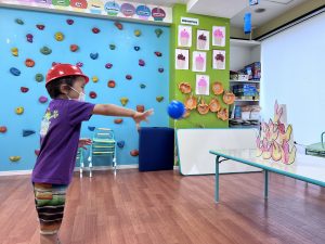 We also got to play a game where we put out a fire by throwing balls at a cup tower. Let’s see who can get rid of the most fire!