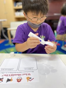 Let’s learn about fire safety today! Milky Way class started with watching a video that gave us some helpful rules to keep us safe in the event of a fire.