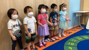 ウォータービーズクロックの後、What Time is it Mr.Wolf? という時間を伝えるゲームをしました。