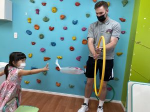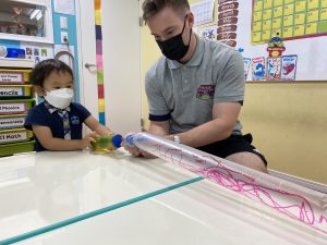 最後はロケットを飛ばしてみました。うまくフラフープを通るかな?!