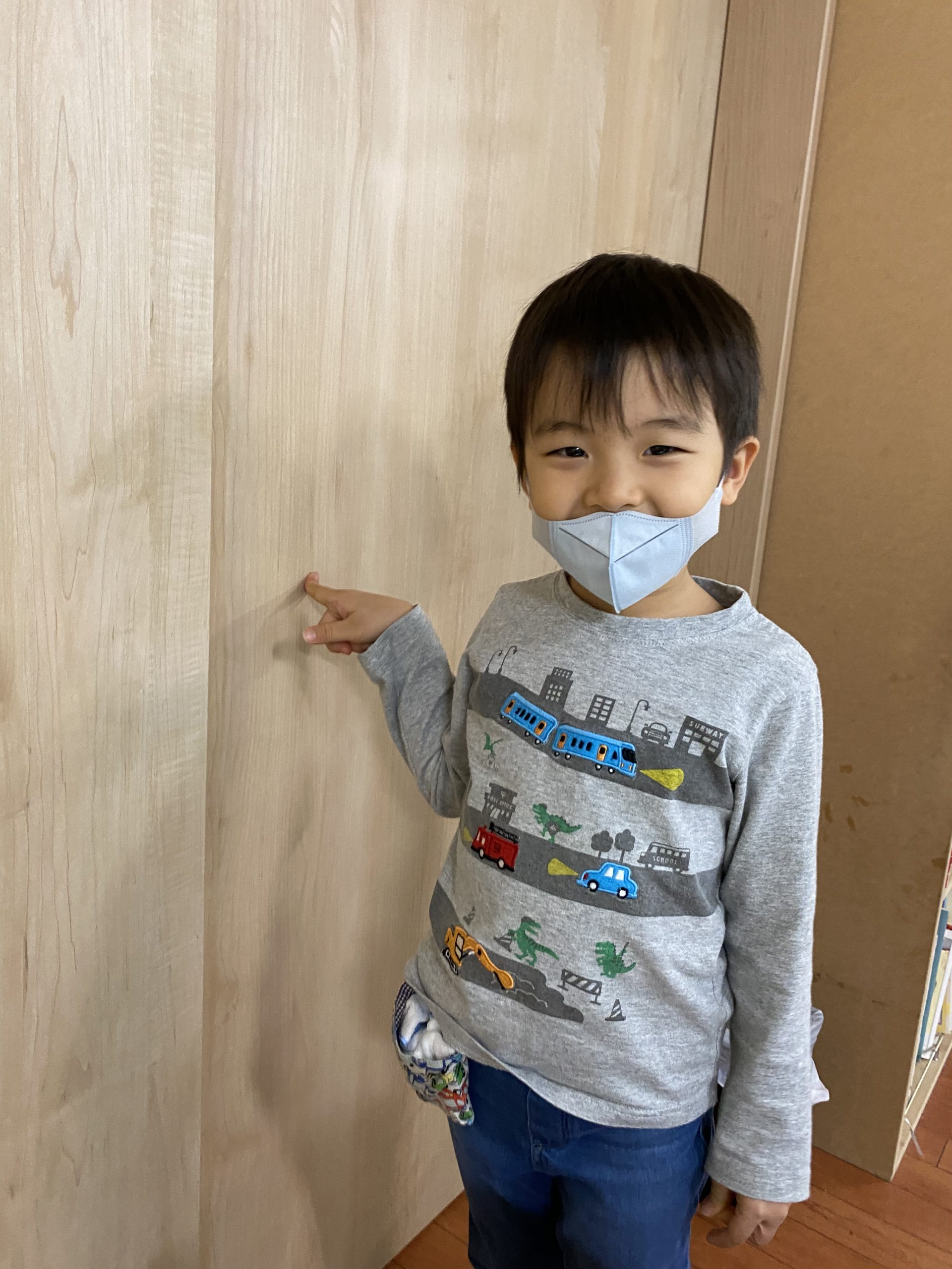 ビデオを観た後、教室の外に出て木で作られているものを探しに行きました。