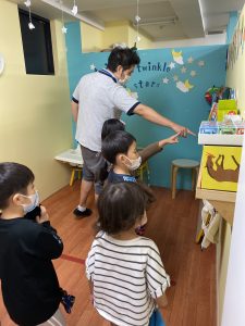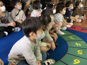ビデオを観た後、教室の外に出て木で作られているものを探しに行きました。