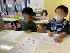 探しに行った後は、ワークシートに、木で作られたものは何だったか記入しました。