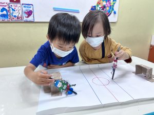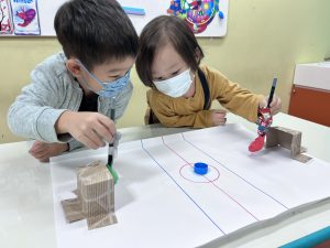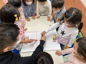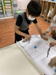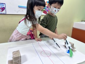 さて、ビデオを観た後は、鉛筆を使ったAir Hockey を楽しみました。