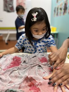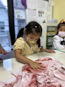 年少さんクラスではTshirtにスプレーをし仕上げました。