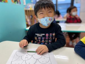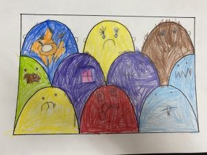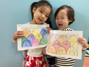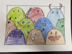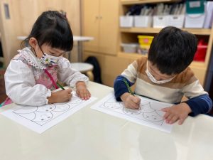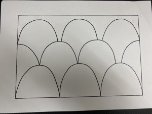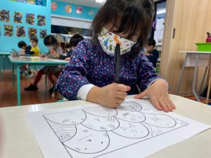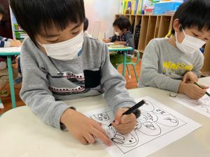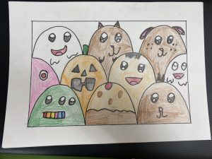 子どもたちにこの下絵を渡し、好きな絵を描き加えて作品にしようと伝えました。