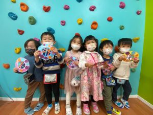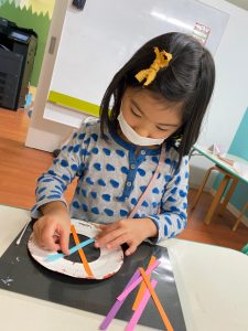 年中さんたちはリングをペインティングしました。