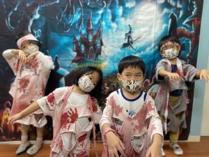 10月はパジャマパーティーをしたり、ゾンビシャツを作ったり、ハロウィンパーティーやTrick or Treatを行ったりしました。