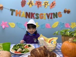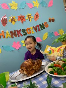 11月は秋の公園に遠足に行ったり、年長さんはお泊り遠足に行ったり、Thanksgiving dayをお祝いしたり、11月生まれのお友達の誕生日会も行いました。