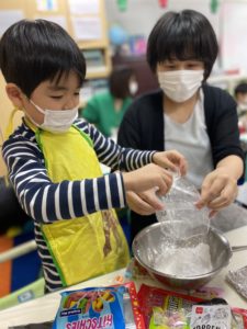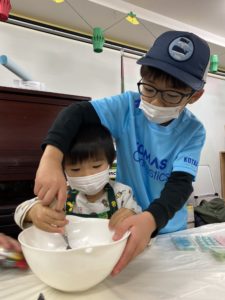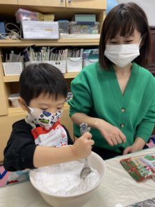 混ぜて混ぜて、、アイシングを作り
