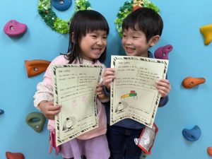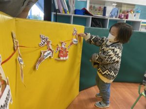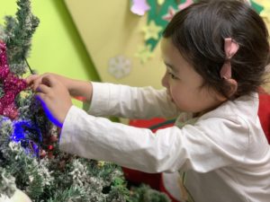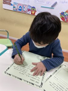 今日も単語のお勉強からクラスが始まりました。nice, naughty, milk and cookiesなどクリスマスに関係する単語を先生とお勉強しました。