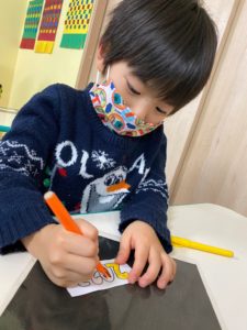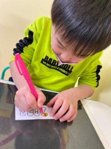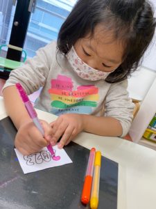 今日は子どもたちはオリジナルのシールを作っています。