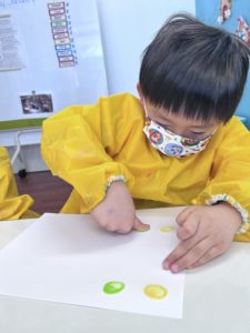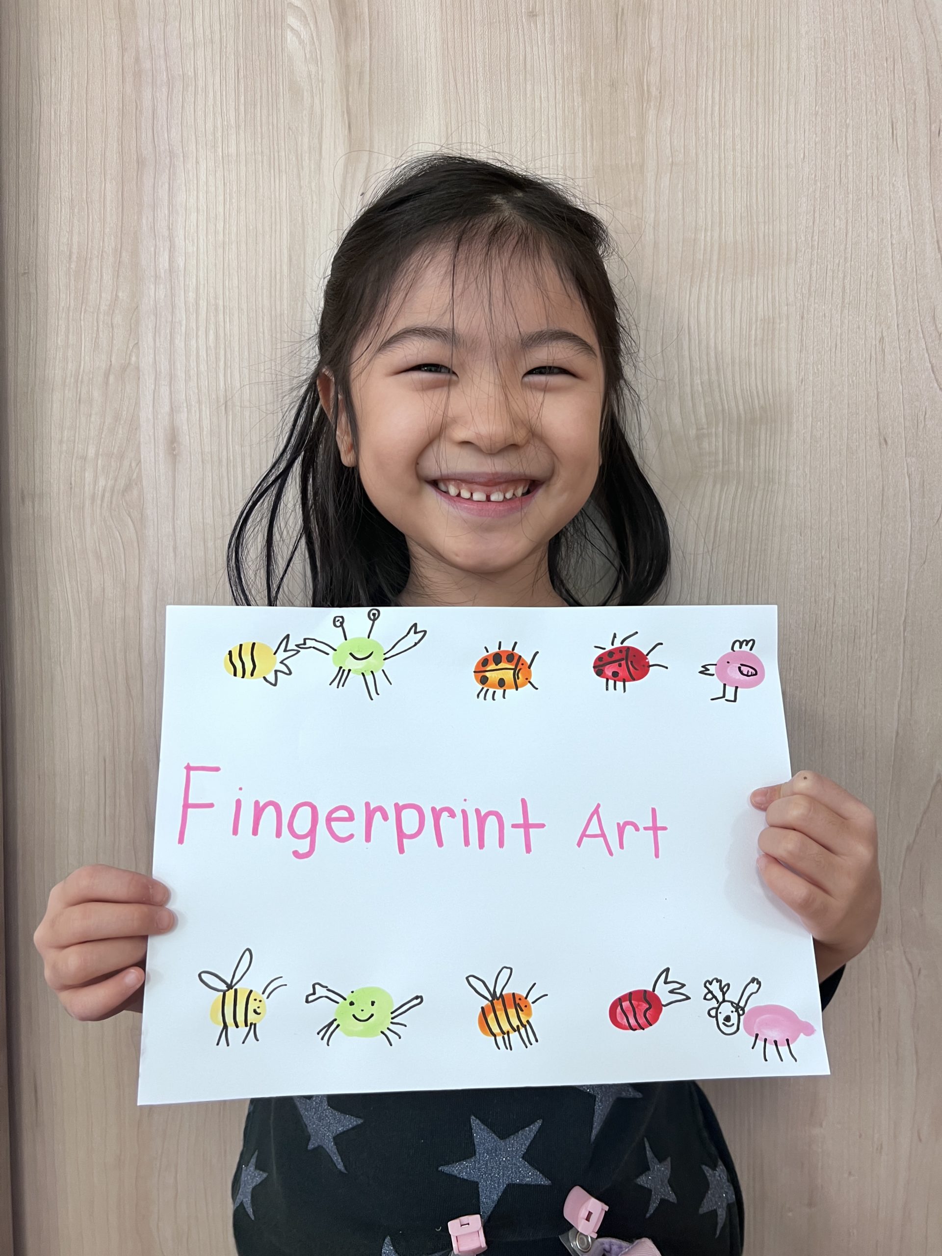 Each student dipped their thumb into colorful finger paint and pressed it on paper.