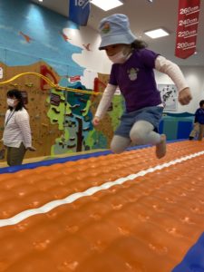 エアトラックという大きなトランポリンでジャンプしたり走り回って遊んだり、