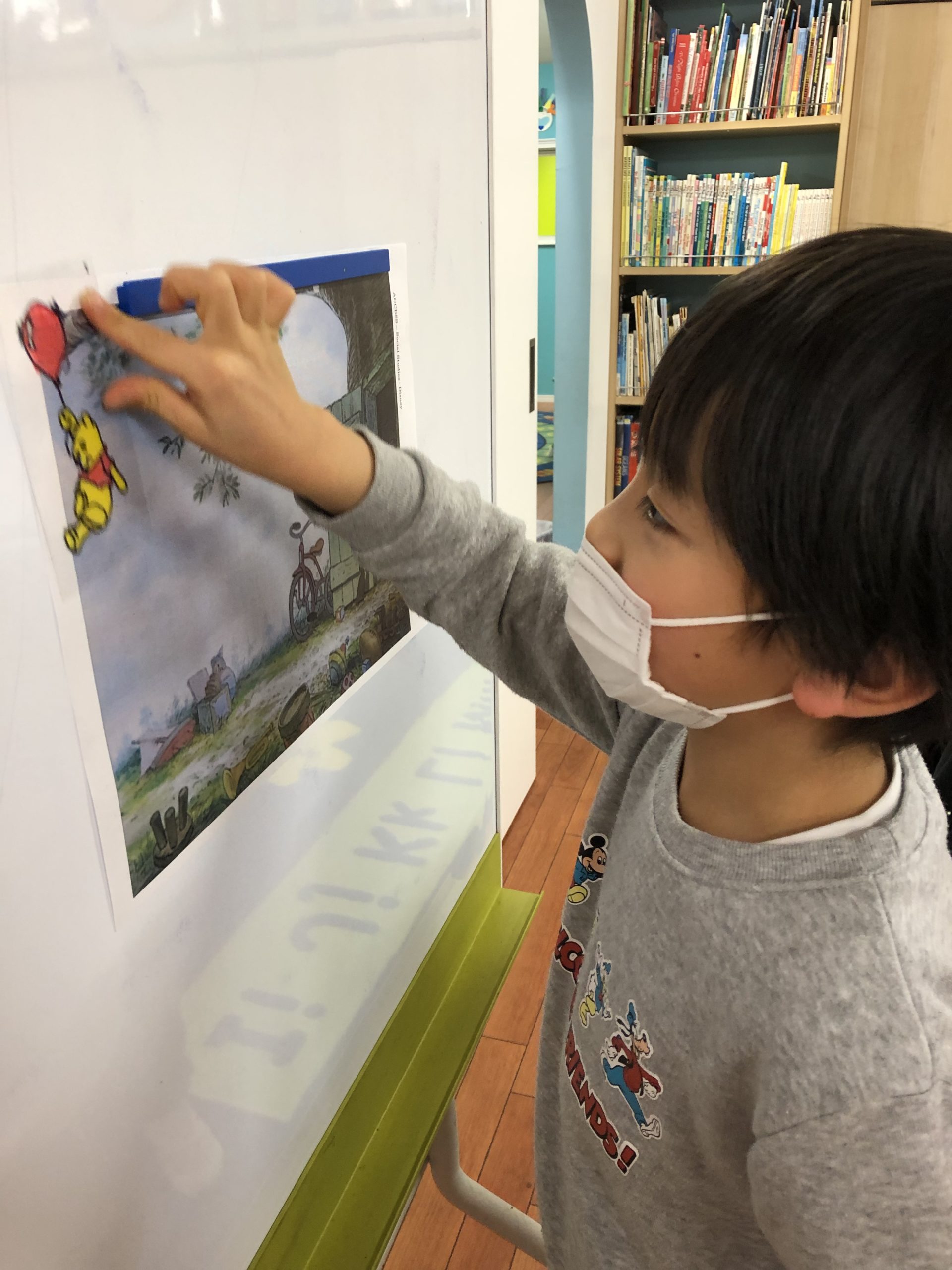 Because the drawing was on clear paper, when we held it to the image of Winnie the Pooh’s house we could move it to make it look like he was flying! It was so cool. Great job everyone!