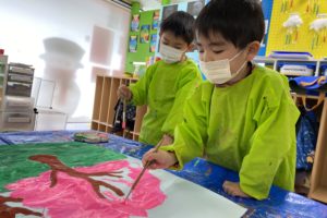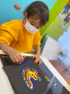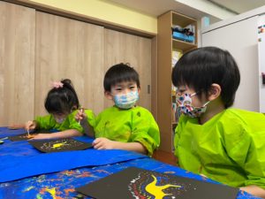 年少さんもQ-tips(綿棒)を使って器用にドットペインティングをしましたよ。