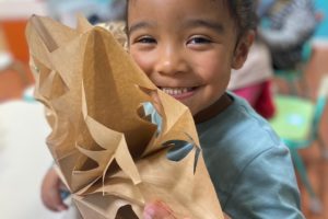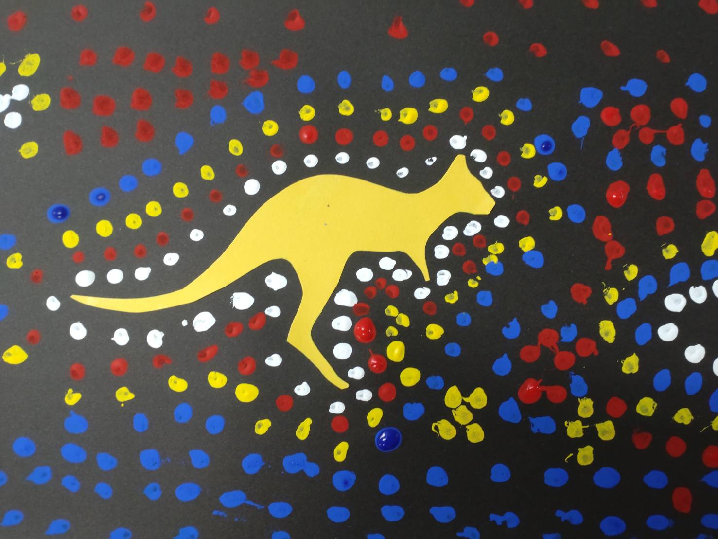 子どもたちは動物の周りに原色のドットを描きました。