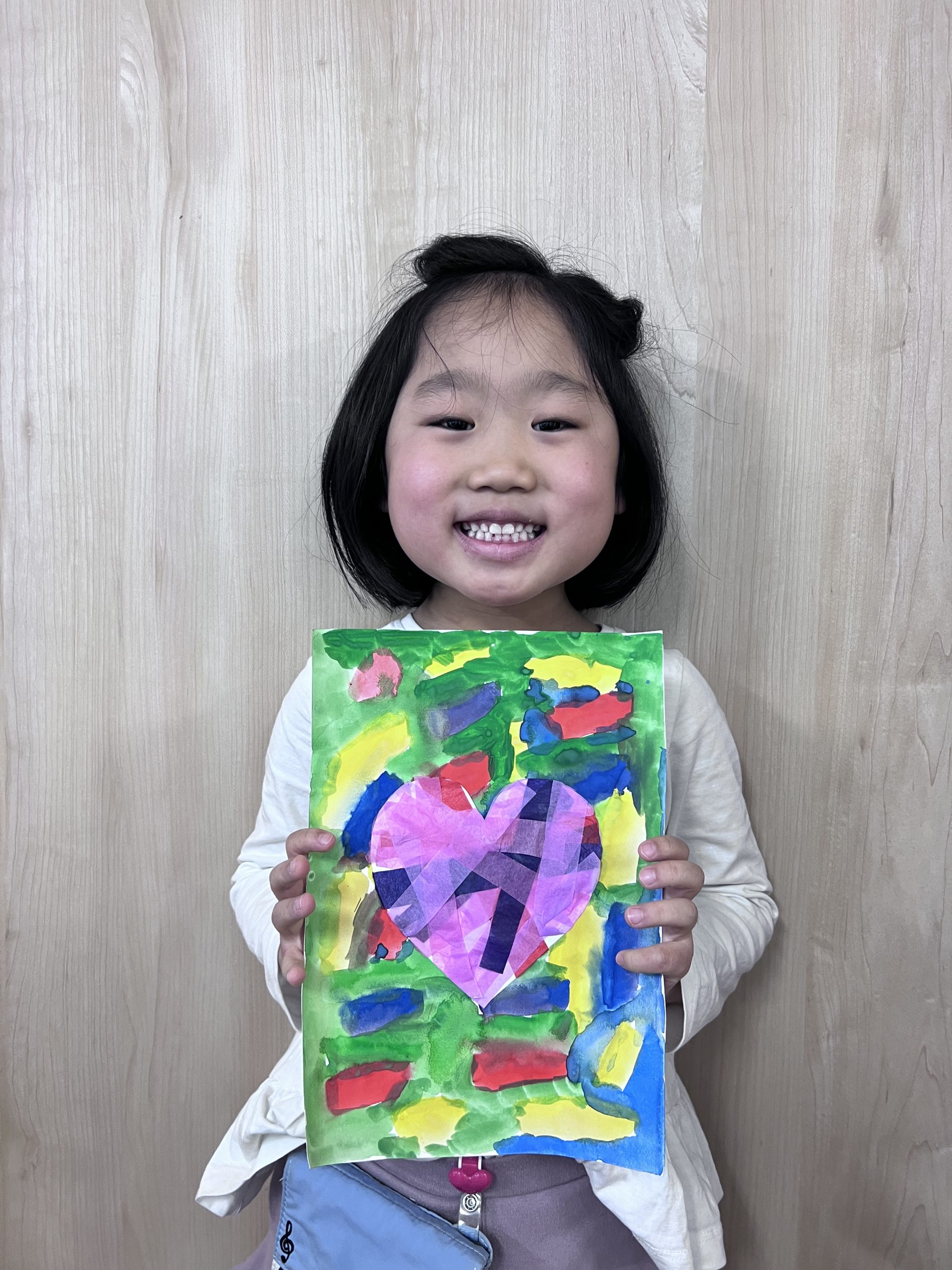 The final step was to glue the heart in the middle of the painting. Such beautiful 2-D Valentine collages! Great job Milkyway!