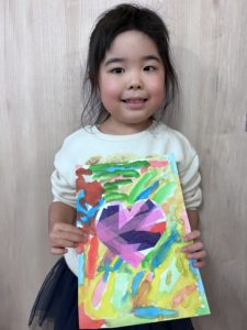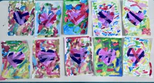 The final step was to glue the heart in the middle of the painting. Such beautiful 2-D Valentine collages! Great job Milkyway!