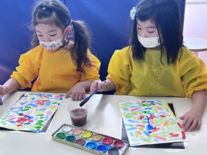 The next step was to paint with water color for the background. The water color patterns turned out so unique and colorful!
