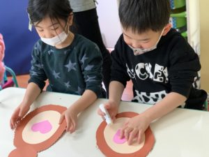 Galaxy and Milky way class are getting ready for Valentine’s Day! Today in art class K3 made Valentines for the people they love.