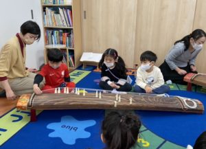 今日は日本の伝統楽器の一つである箏について学ぶため、特別に箏の先生がPAPにきていただきました!