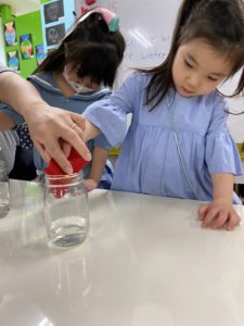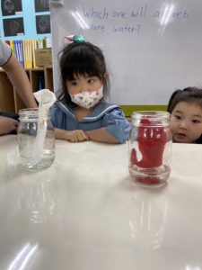 布を取り出した後の水分の量を比べてどちらの繊維がより水分を吸収したか比べました。