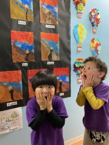 All the classes took a tour around the school and inside different classes to see the displays. Kids pointed out the art that caught their eye.