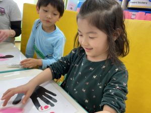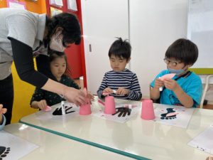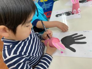 They added pompons for the nose and tail. Finally we can see the finished project. They are pink rabbits! This project turned out great. I think everybody has learned a lot about art in their time at PAP. It was so fun creating together.