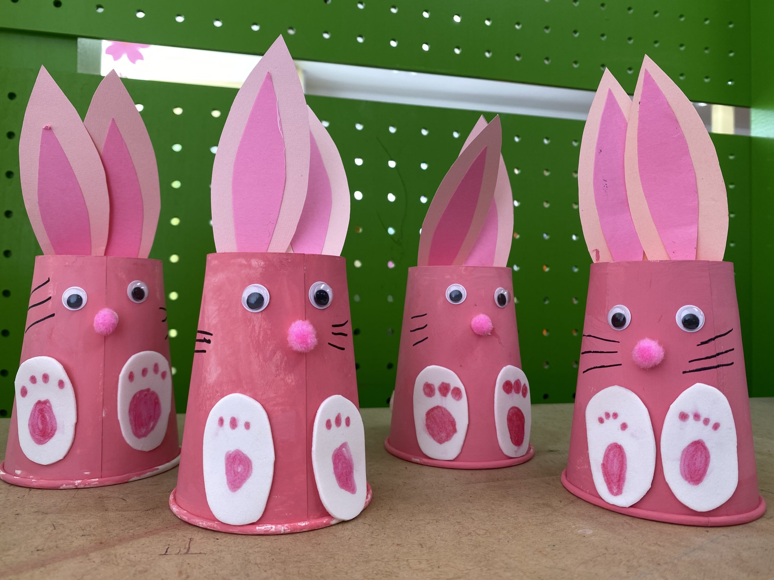 While the cups dried, they glued together some long pink ears.