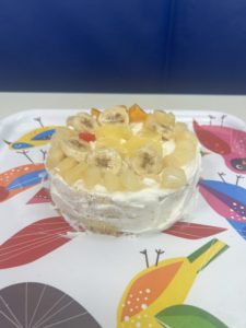 フルーツがいっぱいのケーキが完成しました♪