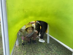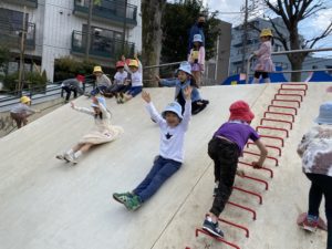 ロープなどで坂を登ったり、滑って降りたり、たくさん体を動かしました。