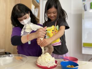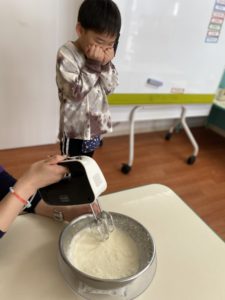 クリームがはねて、少し怖がっている子もいました。