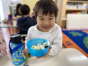 年中さんは生クリームしぼりもしましたよ。