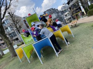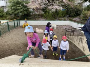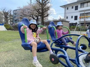 午前中、年少・年中・年長さんは大きな公園に行きました。
