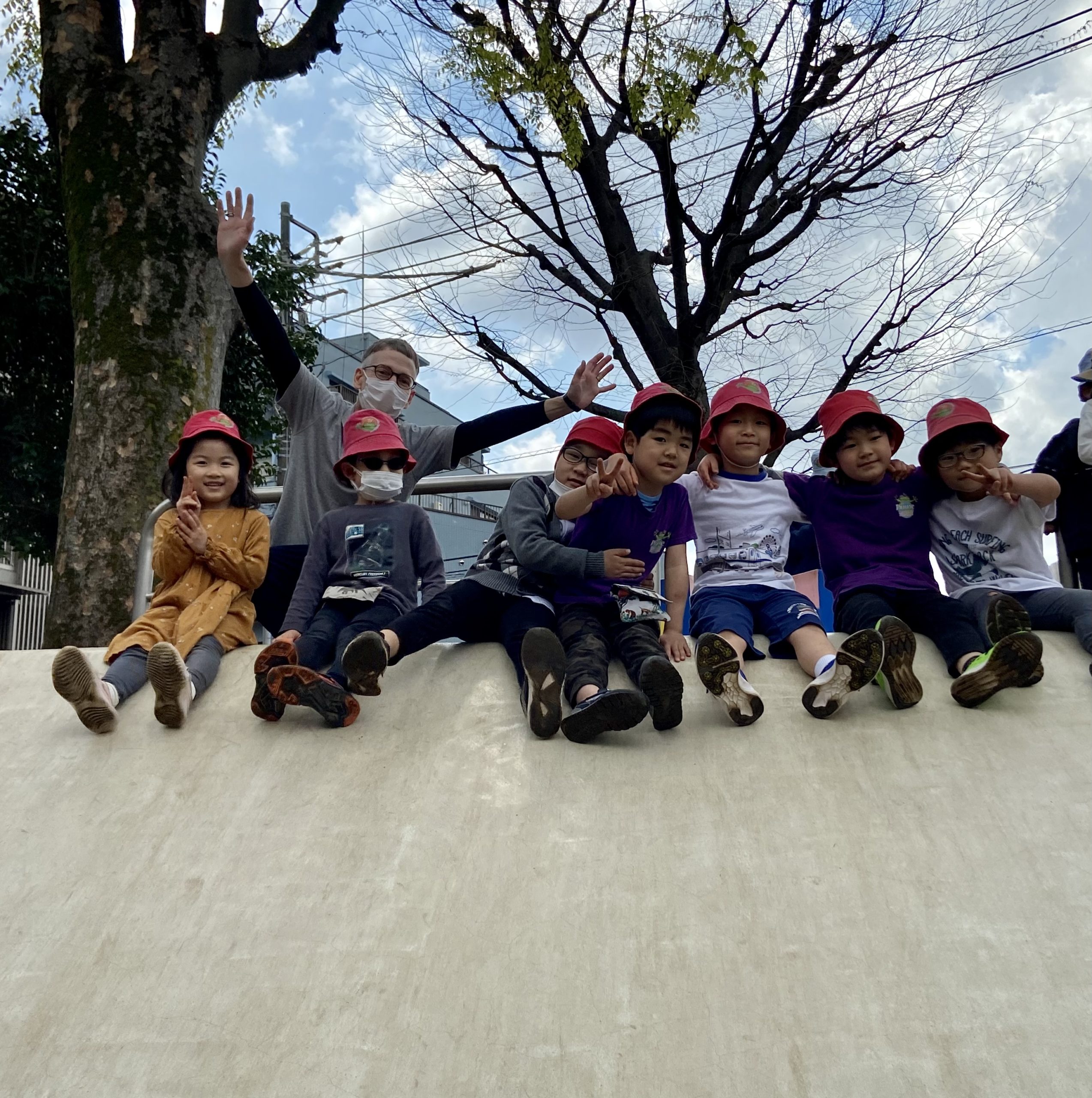 上まで登り切れない子を助けてあげる光景もありました。