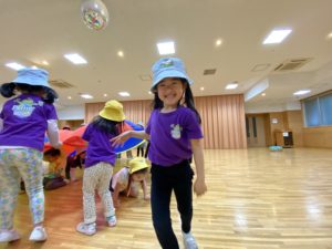 Stephen 先生のリードで、スキップなどの基本的な動きからボールなどの道具を使ったアクティビティまで、子どもたちはたくさん体を動かしました。