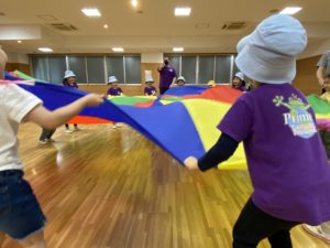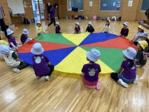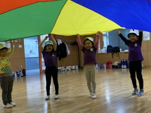最後は各校ごとにパラシュートを使って、ロケットを作ったり、中をくぐったりしました。