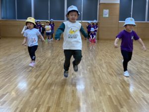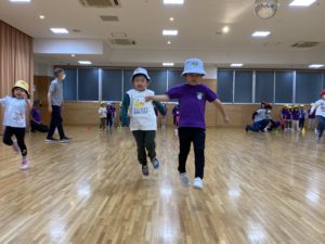 準備運動が終わったら、しっかり整列して、スキップなどの基本的な動きをしました。