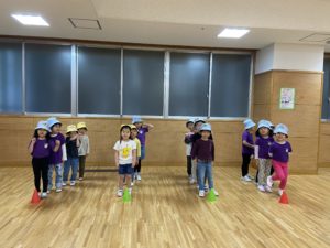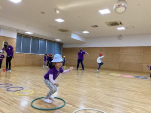 昨日、公立の体育館にて、年中さんと年長さんクラスは、五反田校の子どもたちと一緒に合同P.E.を行いました。