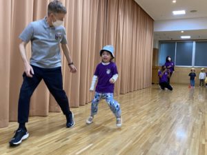 スキップなど難しい子に対して、Stephen先生がフォローします。