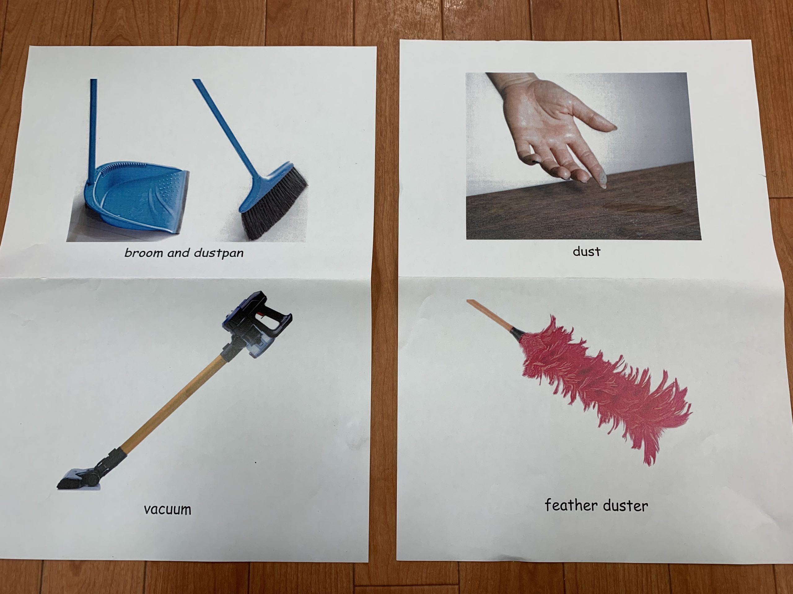 まずは、ホコリや、掃除道具などの単語を学びました。