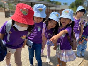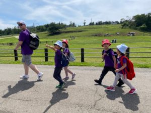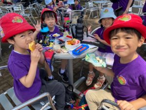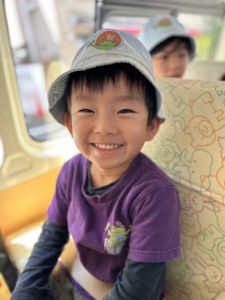 バスの中では、今日は何曜日?などと聞いて、ミニcircle time を行ったり、たくさん曲を聞いて皆で歌ったりしました。
