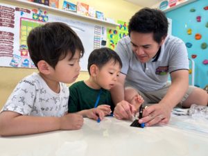 わからないところは先生に教えてもらいながら、LEGO houseを作っていきます。