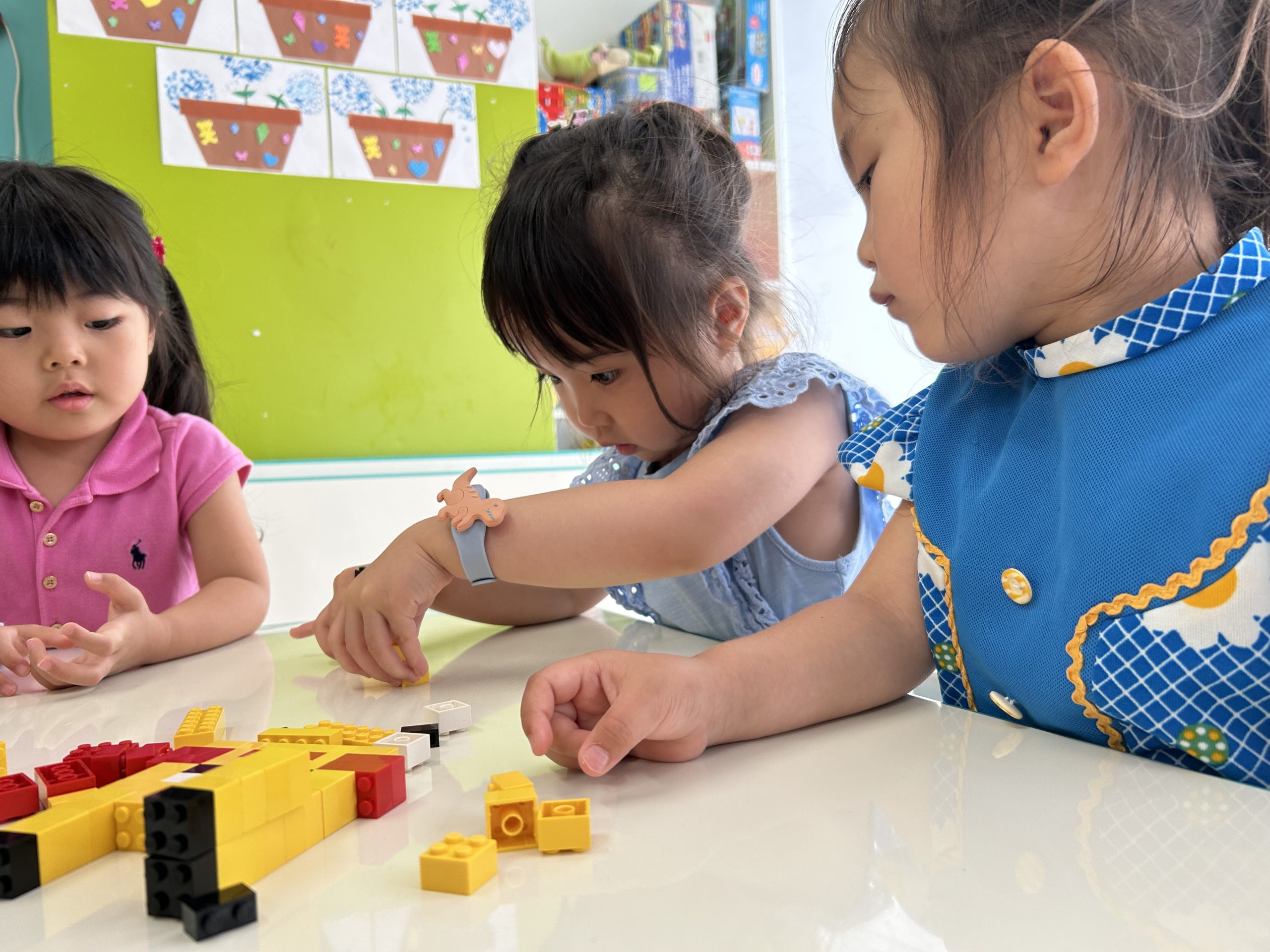 今日の年少さんのクラスではLEGOを使って2D pictureを描くことに挑戦しました。